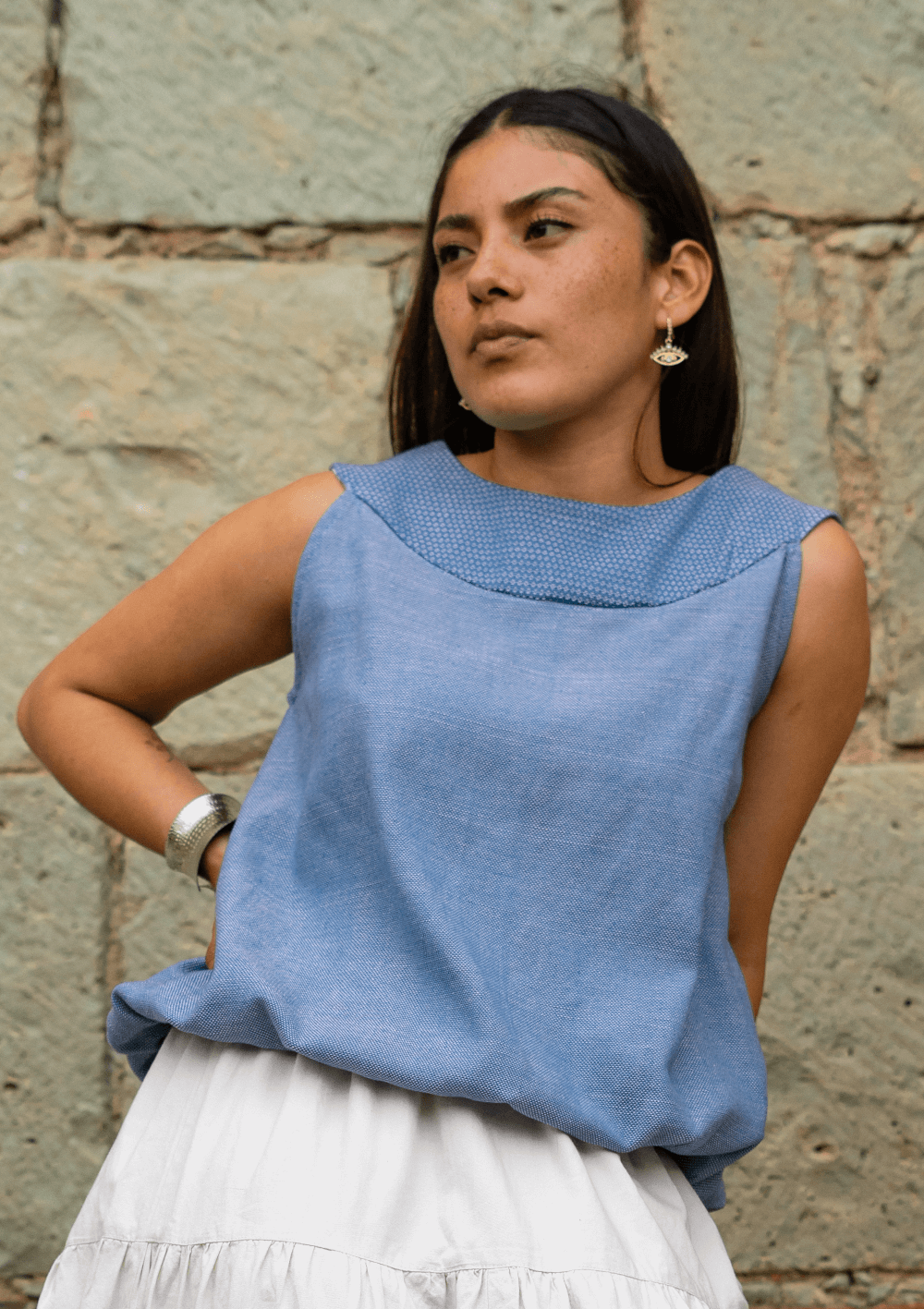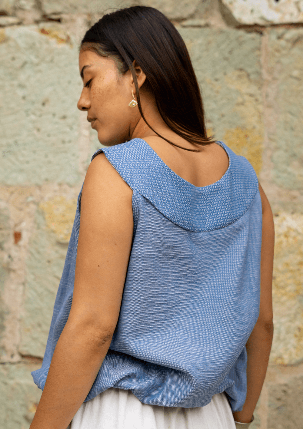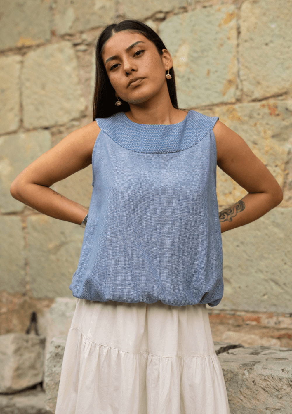 Camila Azul: Una blusa artesanal hecha a mano de Algodón 100% natural. Comodidad y frescura para la Mujer Bella y Femenina