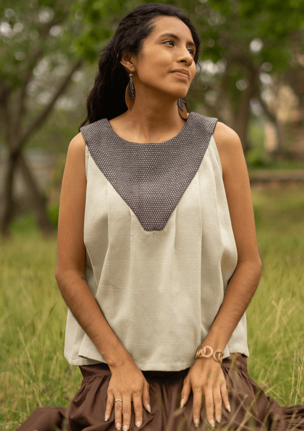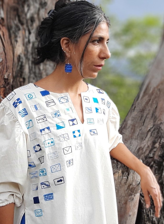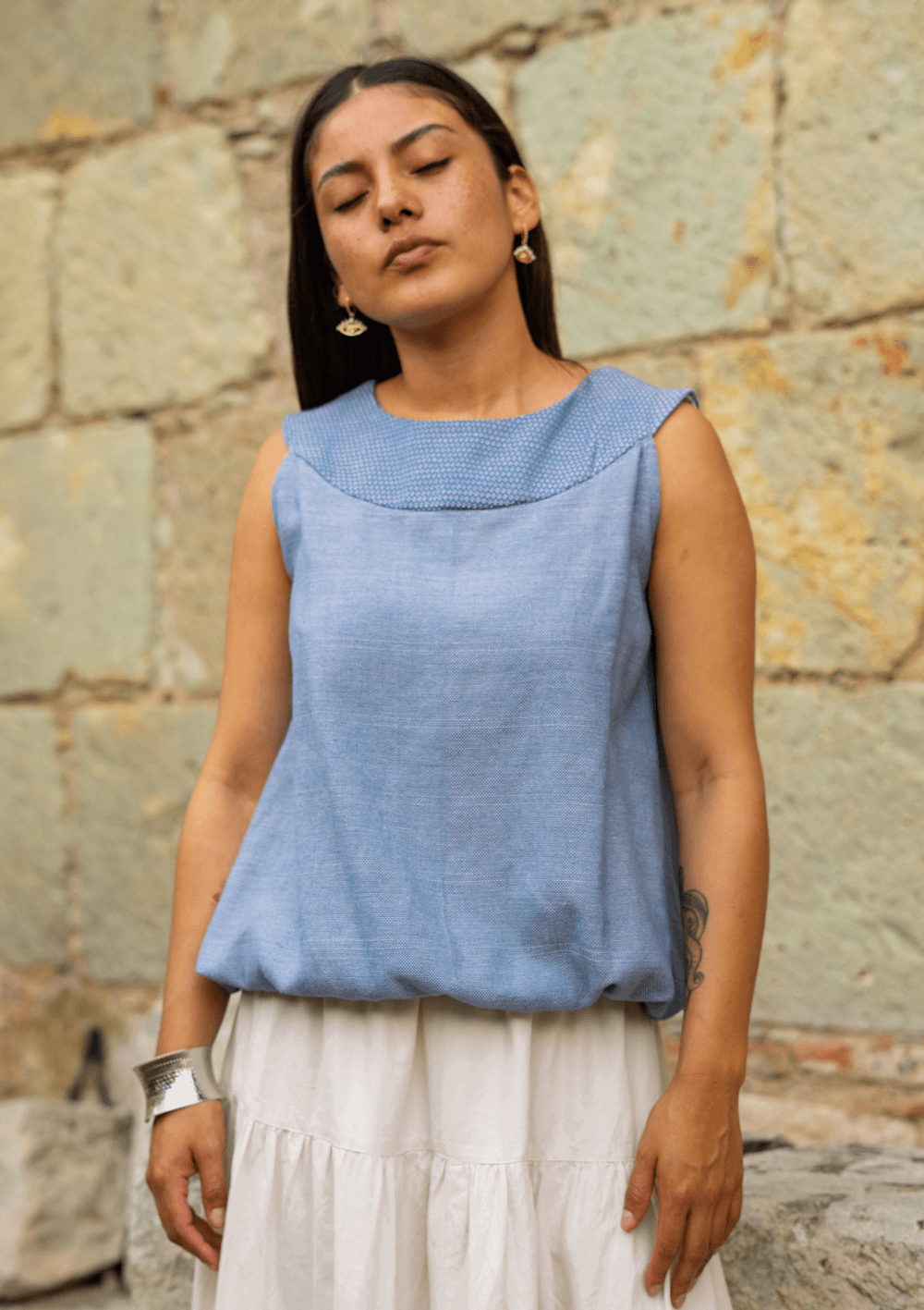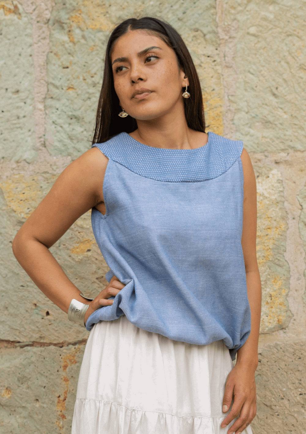 Camila Azul: Una blusa artesanal hecha a mano de Algodón 100% natural. Comodidad y frescura para la Mujer Bella y Femenina